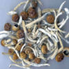 Blue Meanie Magic Mushrooms strain was first discovered in Australia, thanks to its warm and tropical climate. The caps of these mushrooms tend to feature white speckles, and the stem is relatively thick and moderately fruity. The caps begin as light brown but become whiter as the psilocybin mushroom spores mature over time.